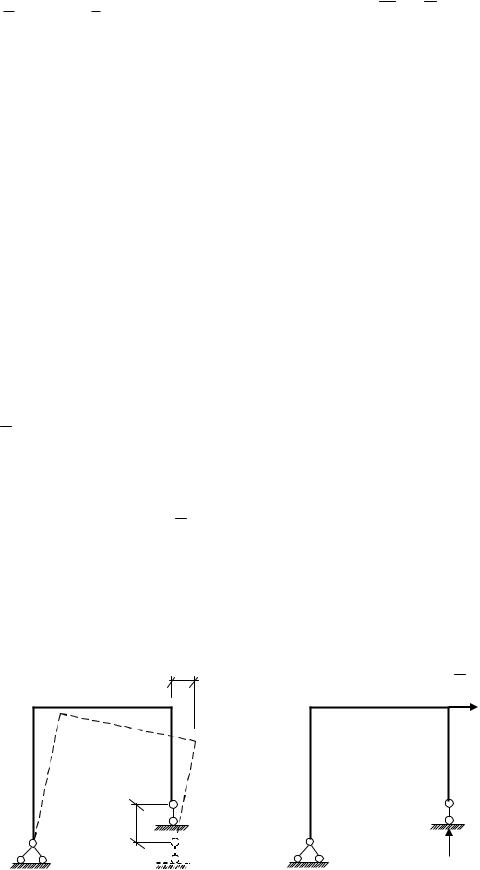 Пусть опора В рамы, представленной на рис. 5.20, получила осадку на величину . При определении линейного перемещения произвольной точки, например к, в единичном состоянии к этой точке в направлении искомого перемещения прикладывают сосредоточенную силу F 1. От действия этой силы определяют опорные реакции.