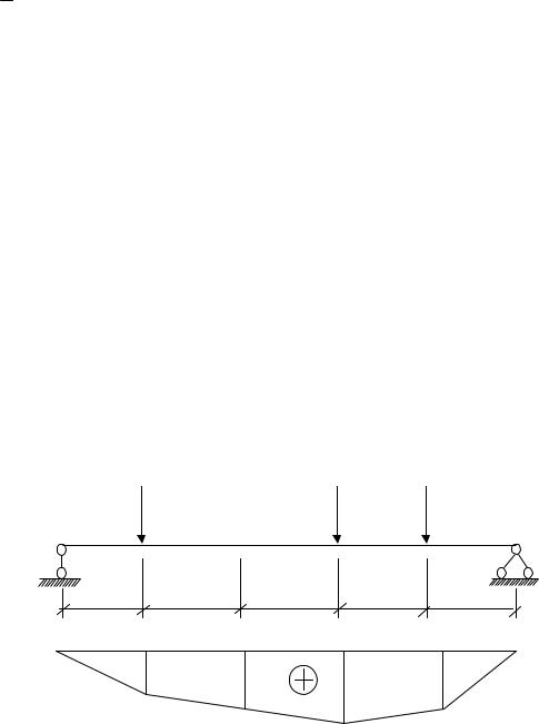 Рассмотрим пример построения эпюры М для балки (рис. 2.24), нагруженной системой сосредоточенных сил F. Пролёт балки =10 м разделён на пять частей, т.е. n=5. Тогда длина одной части составит