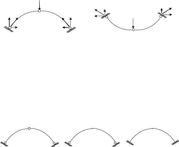 По степени статической определимости различают арки: трёхшарнирные (рис. 3.2, а), двухшарнирные (рис. 3.2, б) и бесшарнирные