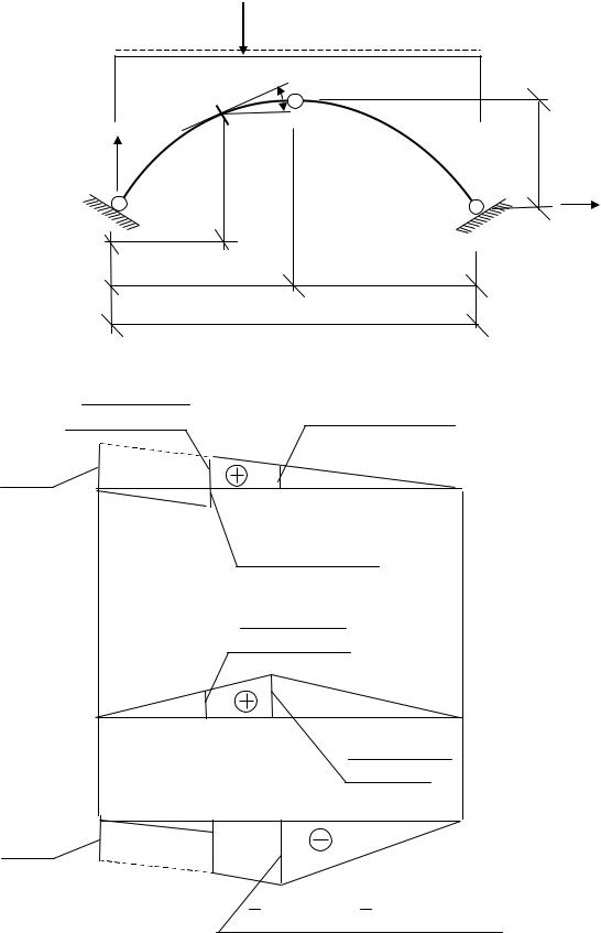 Построение линии влияния поперечной силы Qka методом нулевой точки показано на рис. 3.11. Для того чтобы поперечная сила в сечении k Qka 0, вектор опорной реакции RA должен проходить параллельно касательной, проведенный к очертанию оси арки в точке k. Формула для определения расстояния xQ, полученная по тому же принципу, что и в предыдущем случае, имеет вид