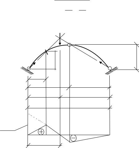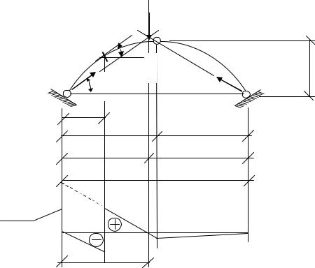 му двух линий влияния балочной линии влияния Qk0, построенной для сечения к из рассмотрения пролёта арки как пролёта балки, и линии влияния распора Н , умноженных соответственно на значения cos k и sin k , имеющих место в сечении к. На рис. 3.8 показано построение л.в. Qka .