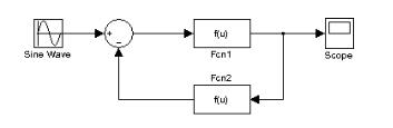 В пакете Simulink соединение с обратной связью получаем с помощью сумматора, указывая знак обратной связи (рис.4.3). Для этого необходимо два раза нажать левой кнопкой мыши на его изображении, в появившемся окне приводятся знаки входов сумматора слева направо по часовой стрелке, которые по умолчанию оба положительны (++). Чтобы сделать второй вход отрицательным, необходимо изменить второй знак на отрицательный.