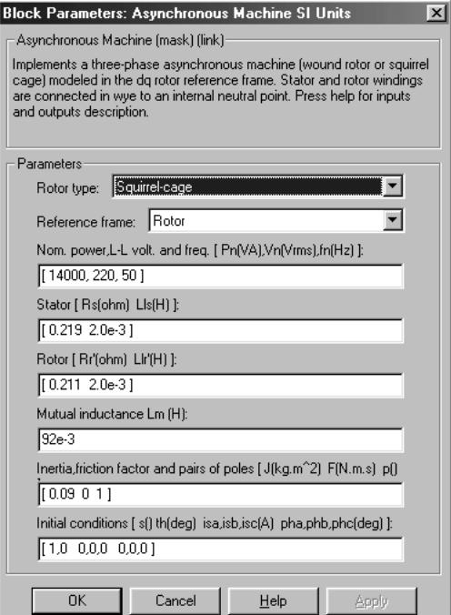 На рис. 10.9 в качестве примера показана панель настройки асинхронной машины.