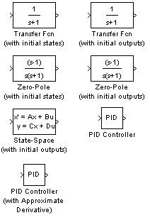 рии: PID-контроллеры и блоки типа State-Shfct, Transfer Fnc и Zero-Pole,