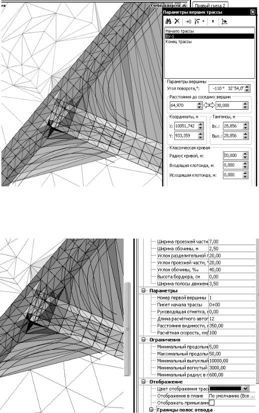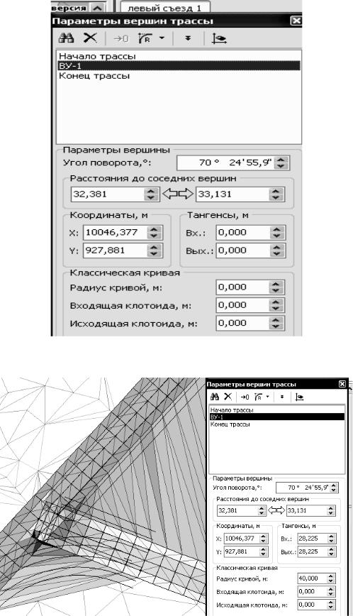 Вертикальная увязка вспомогательных съездов выполняется аналогично увязке оси примыкания. Напомним, что в качестве существующей поверхности для вспомогательных съездов установлен слой «ПРОЕКТ», который является проектной поверхностью основной