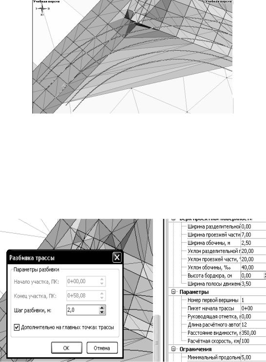 При этом должен быть установлен флаг «Дополнительно на главных точках трассы» для того, чтобы поперечники были созданы также в точках начала закругления.