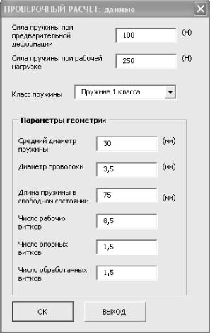 Рис. 8. Приложение «Проверочный расчет пружины сжатия круглогоИпоперечного сечения» (Форма № 2)