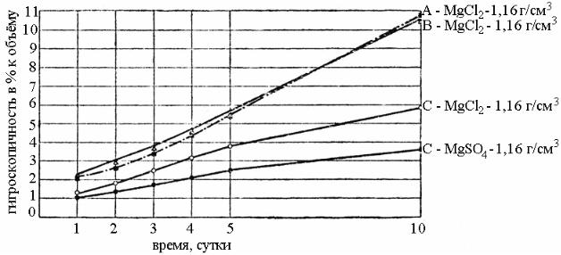 Зависимость гигроскопичности пеномагнезита от вида затворителя