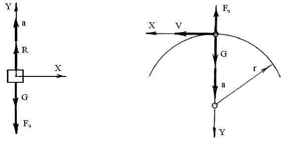 где G = m g, так как ускорение g и сила G направлены в сторону оси OY; Fи = ma – сила инерции, которая направлена в сторону, противоположную оси OY.