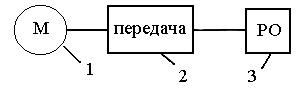 Машина состоит из трёх основных частей: приводного двигателя – 1; передачи – 2; рабочего органа – 3 .