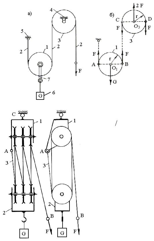 На рисунках обозначены:G – нагрузка; F – сила, уравновешиваю-