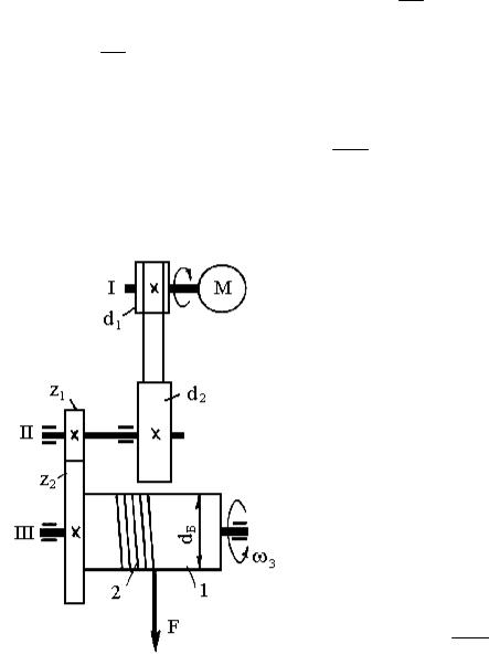 диаметр барабана dб = 250 мм, угловая скорость барабана 3 = 4 рад/с, рп