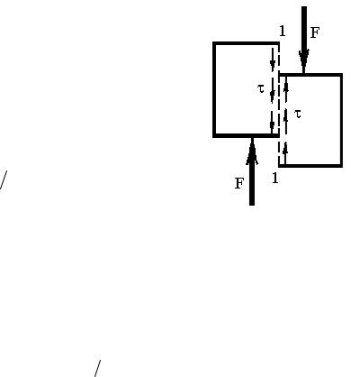 При деформации сдвига и кручения происходит смещение двух соседних слоев материала в плоскости сечения 1-1. Напряжения, возникающие при этом, лежат в плоскости сечения и называются касательными (рис.7.2). Они действуют вдоль плоскости сечения и обозначаются буквой . Их величина определяется по формуле