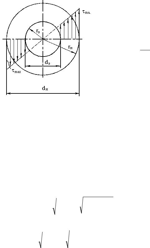 Для полого вала в формулу (10.19) подставляем значение Wр из формулы (10.42) и решаем в отношении диаметра dн, получаем