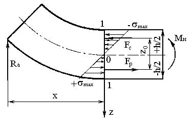 где Fp = Fc – пара сил с плечом Zo, создающая изгибающий момент Ми, который уравновешивает внешний изгибающий момент (см. рис.11.1 и формулу (11.7))