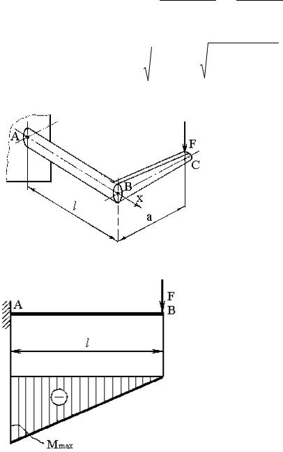 Определить по третьей теории прочности диаметр вала d, если [ ]=100 МПа, l=60