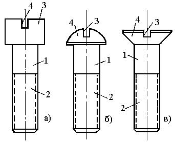 Винт состоит из стержня 1 с резьбовой частью 2, головки 4 и шлица 3 (рис. 14.3).