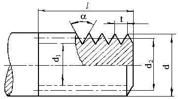 – средний диаметр резьбы; d1 – внутренний диаметр резьбы; t – шаг резьбы, расстояние между соседними гребнями резьбы; – угол профиля резьбы, угол