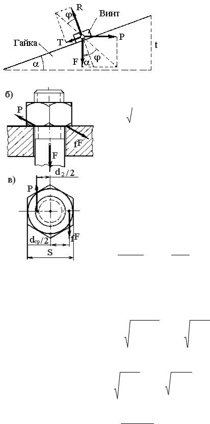 где dcp – средний диаметр, который равен среднему арифметическому между размером гайки или головки болта под ключ – S и наружным диаметром резьбы d:
