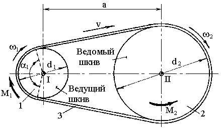 Диаметры шкивов d1 и d2 определяют передаточное отношение между валами I и II (рис. 15.1)
