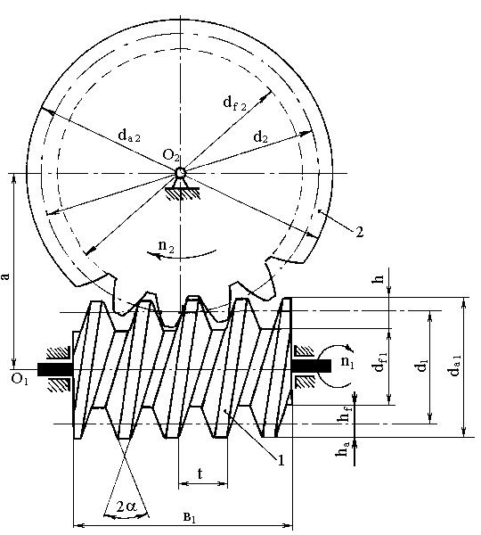 Червячная передача предназначена для передачи вращательного движения с большим передаточным отношением между двумя скрещивающимися валами. Угол скрещивания равен 900.