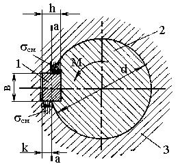 Шпоночное соединение состоит из (см. рис. 18.1 и 18.2) шпонки 1, которая помещается в продольном пазу вала 2 и ступицы детали вращения 3. Шпонка имеет призматическую форму. Она плотно входит одновременно в паз вала