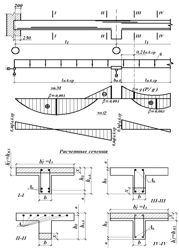 Сечения II-II и III-III рассчитываются на отрицательные моменты как прямоугольные с шириной сечения, равной bв.б, т.е.