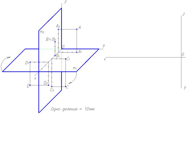 1.Что такое комплексный чертеж точки, как он образуется? Как направлены на комплексном чертеже ось x, ось y, ось z?