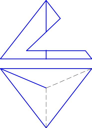 44. Построить линию пересечения двух непрозрачных треугольников. Определить их видимость. F2