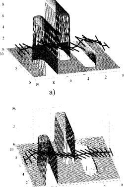 Была проведена серия из 10000 компью¬ терных экспериментов, моделирующих про¬ цесс поиска оптимальной траектории переме¬ щения объекта в среде с полидистантными поверхностями, построенными вокруг реаль¬ ных поверхностей препятствий [Ynp], сформи¬ рованных случайным образом из сочетания нескольких параллелепипедов, каждый из ко¬ торых имел случайные размеры.