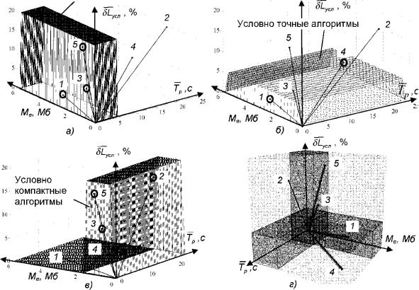 При сравнении алгоритмов по принятым критериям оценки эффективности, в трех¬ мерном пространстве положений векторного критерия эффективности могут быть выделе¬ ны отдельные области, соответствующие оп тимальному значению какого-либо одного, двух или всех трех компонент вектора, определяе¬ мые условиями вида: