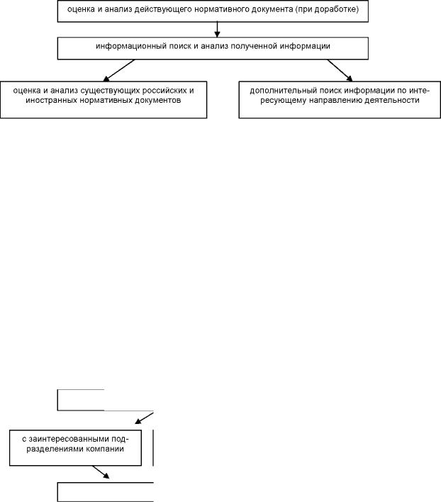 В результате разработку нормативной до¬ кументации можно представить в виде слож¬ ного процесса, состоящего из определенных этапов (рисунок 1).