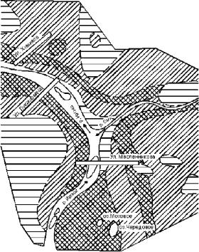 мент, перекрытый почти горизонтально зале¬ гающими мезо-кайнозойскими породами. Поро¬ ды палеозойского фундамента, представленные гранитами, диабазами, альбитофирами, гней¬ сами, сланцами пересечены тектоническими разломами северо-восточного и северо¬ западного направления. По этим разломам од¬ ни участки (блоки фундамента) опускались, дру¬ гие - поднимались. В результате тектонических движений блоков фундамента на его поверхно¬ сти образовались прогибы и выступы.
