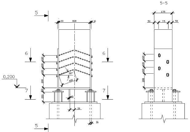 узел сопряжения стойки с фундаментом (2 проекции); |