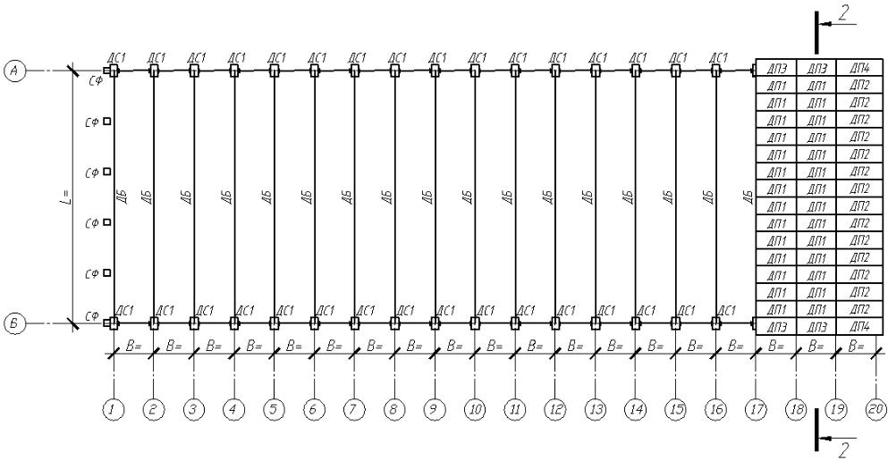 та здания L и шага стропильных балок (рис. 3, 4). |