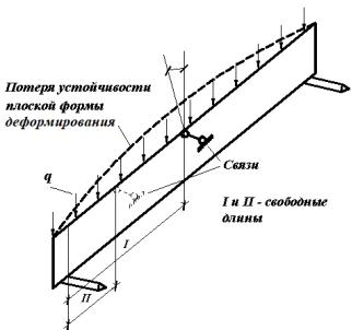 Данная проверка производится по СП [1, п. 6.14, формула (24)]. Принципиальная схема для расчета потери устойчивости плоской формы дефор-