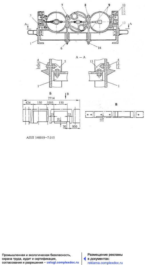 1 - передняя поперечина; 2 - шайба; 3 - гайка; 4 - болт М10 35; 5, 13 - кронштейны поперечины; 6 - накладка стремянки; 7 - усилитель; 8 - стремянка; 9 - трехволновые кронштейны; 10 -
