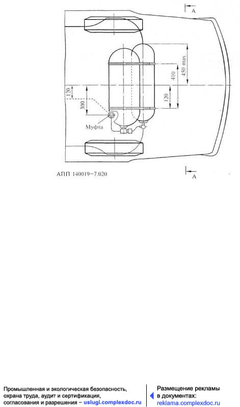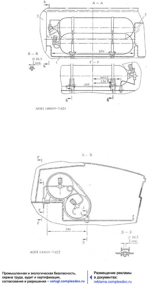 Рис. 7.21. Схема установки газовых баллонов на автомобили моделей ВАЗ (сечение А-А - см. рис. 7.20, сечение Г-Г - см. рис. 7.22):
