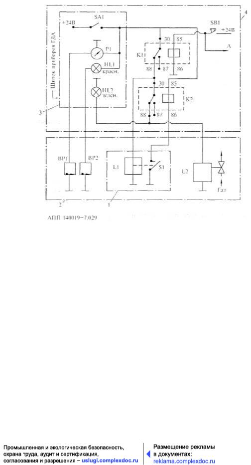 HL1 -лампа сигнализации остаточного давления газа в баллонах;
