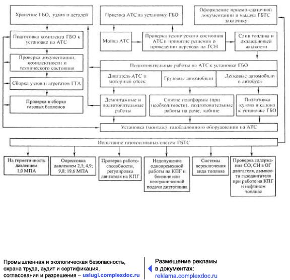 Рис. 2.1. Функциональная схема выполнения работ по переводу АТС для работы на КПГ и испытаниям ГТС