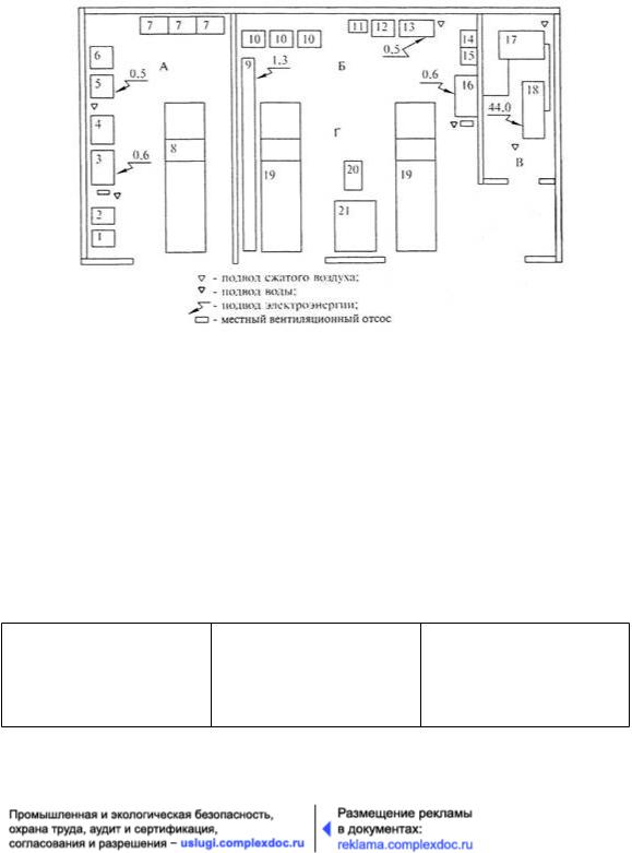 Размещение основного технологического оборудования на площади участков должно быть предусмотрено в технологической последовательности выполнения различных видов работ.