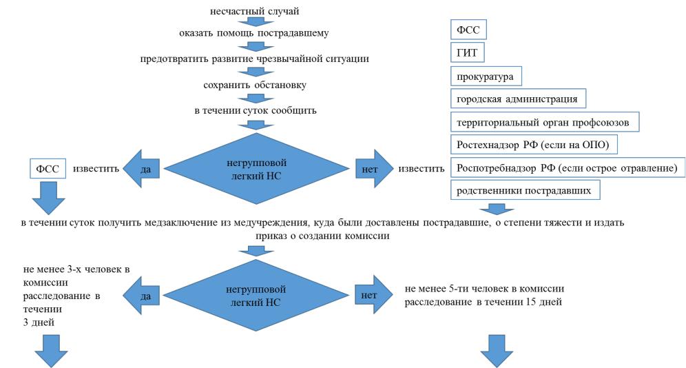 Рис. 2.1. Алгоритм расследования несчастного случая на производстве (начало)
