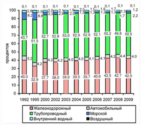Рис. 2. Структура грузооборота по России по видам транспорта [3]