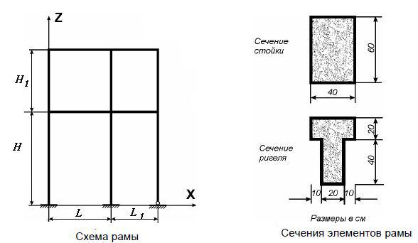 Рис. 5.1. Схема рамы и сечения элементов