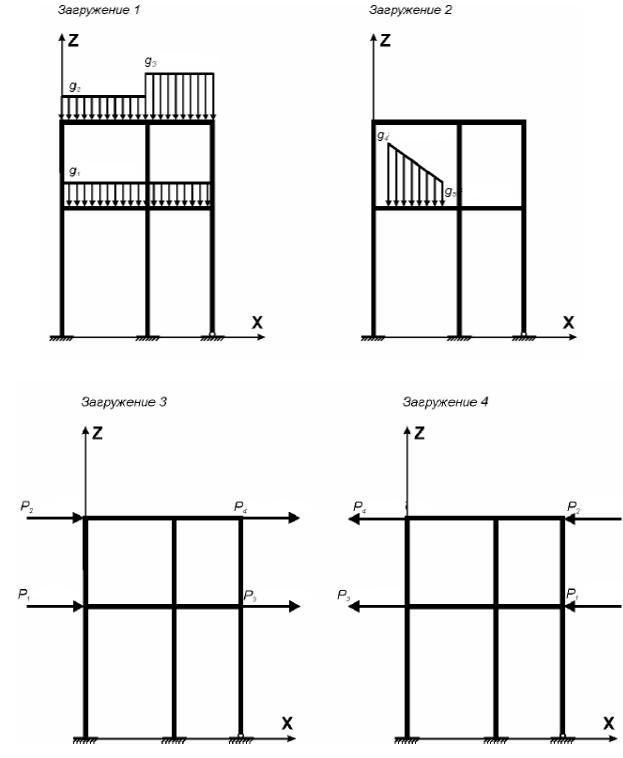 Рис. 5.2. Схемы нагруженияИрамы здания