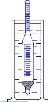 В стеклянный цилиндр, установленный на прочный стол, осторожно наливают испытуемый нефтепродукт, температура которого не должна отличаться от температуры окружающей среды более чем на ±5 С. В нефтепродукт медленно и осторожно опускают чистый и сухой ареометр, держа его за верхний конец, до момента его свободной плавучести (рис. 1.1). Отсчет показаний производится по верхнему краю мениска. При отсчете глаз должен находиться на уровне мениска.