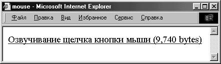 Для прослушивания файла необходимо щелкнуть мышью по тексту ссылки. Автоматически загружается универсальный проигрыватель и воспроизводится звук, производимый мышью в момент щелчка.