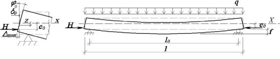 Рис. 15.1. Расчетная схемаДраспорнойИсистемы и схема перемещения торца элемента при изгибе