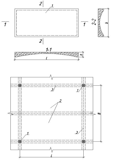 с их применением: 1 – колонны каркаса; 2 – вспарушенная панель; 3 – монолитные швы