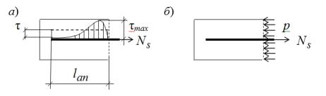 Более распространённый и более опасный случай анкеровки без передачи на бетон сжимающих усилий моделировать сложнее.